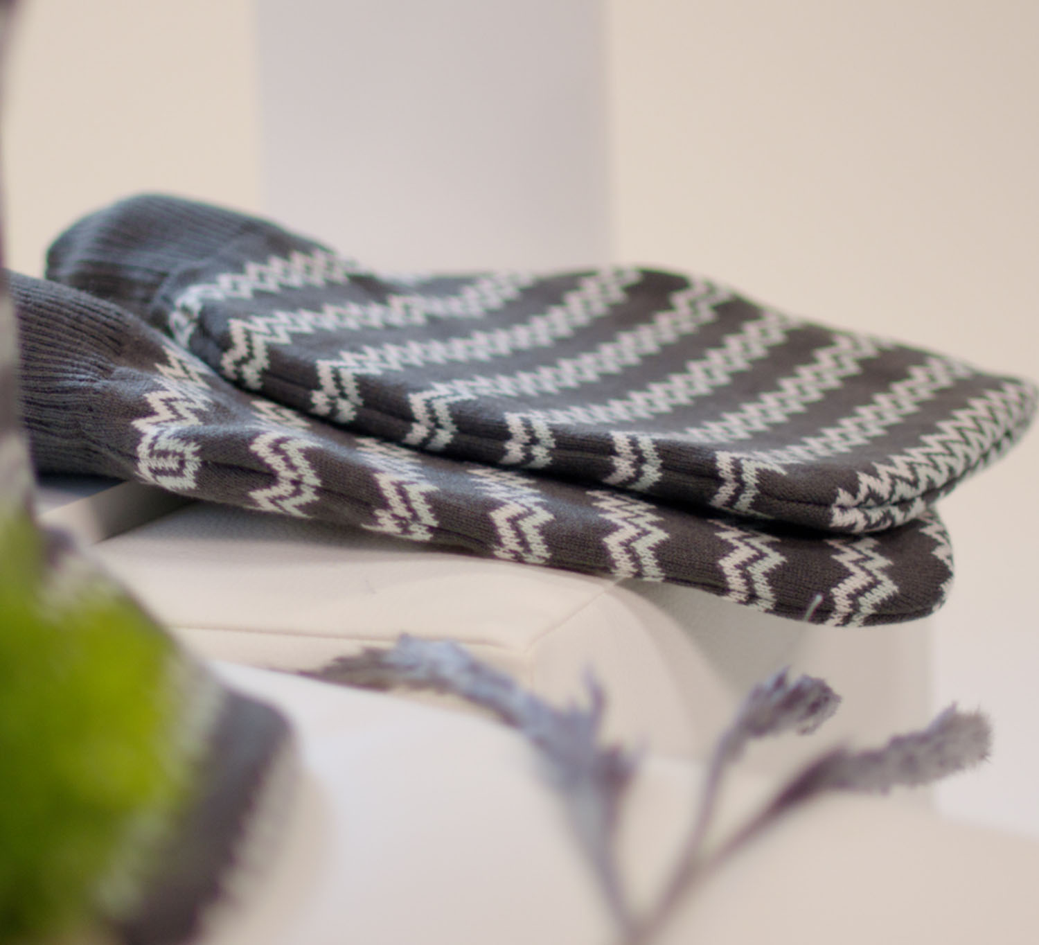 Strickbezug Zick Zack. Verpackt in diesen hochwertigen Strickbezug wird die Klassik-Wärmflasche zum trendigen Must-have für Stilbewusste! Da haben kalte Füße sicher keine Chance mehr!